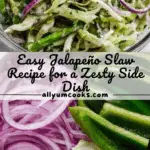 A crisp and zesty Jalapeño Slaw featuring shredded cabbage, red onion, lime-pickled jalapeños, and a creamy, tangy dressing. It’s the perfect spicy-sweet side dish for tacos, burgers, or grilled meats.