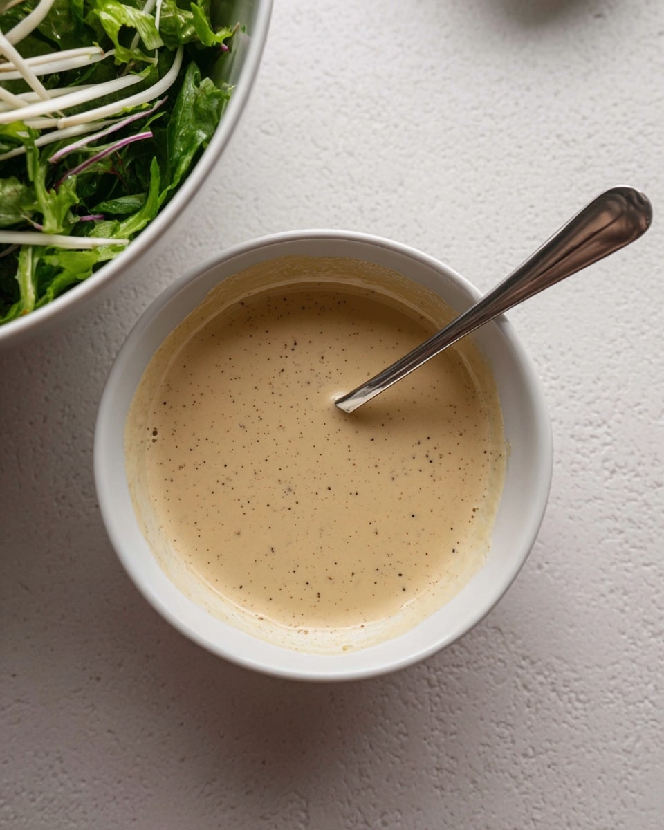 - In a separate small bowl, I whisk together the mayonnaise, Dijon mustard, apple cider vinegar, honey, kosher salt, and black pepper until smooth.