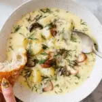 This hearty Kielbasa Potato Soup combines the smoky, savory flavors of kielbasa with creamy potatoes and rich dairy for a comforting bowl perfect for chilly days. The soup features tender leeks, garlic, and fresh dill, melded together with chicken stock, milk, and cream to create a smooth and satisfying texture. It’s a delicious one-pot meal that balances protein, carbs, and creamy goodness.