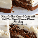 This King Arthur Carrot Cake with Not Too Sweet Cream Cheese Frosting is one of my favorite desserts to bake. The cake is moist, full of warm spices, and packed with carrots, pineapple, coconut, and nuts for texture and flavor. The frosting is smooth and tangy without being overly sweet, making it the perfect balance for this rich cake.
