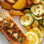 This Salmon Sheet Pan Dinner is a wholesome, flavorful one-pan meal featuring tender salmon chunks baked alongside baby potatoes and zucchini. Seasoned with garlic, fresh herbs, and a hint of red chili flakes, this easy-to-make dinner is perfect for a healthy weeknight meal with minimal cleanup.