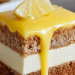 - Serve: Before serving, spread the remaining lemon curd evenly over the top layer. Decorate with fresh lemon slices. Slice or scoop portions to serve chilled.