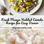 A vibrant and refreshing Mango Halibut Ceviche featuring tender halibut marinated in fresh lime and lemon juice, combined with sweet mango, creamy avocado, spicy jalapeno, crisp red onion, and fragrant cilantro. Perfect as a light appetizer or a healthy snack that bursts with citrusy, tropical, and slightly spicy flavors.