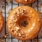 Dip each warm donut into the maple glaze, allowing excess to drip off before placing them on a wire rack. Immediately sprinkle with chopped toasted pecans and a light dusting of flaky sea salt for that perfect balance of sweet, crunchy, and salty.