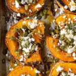- Add Feta and Pepitas: Remove the pumpkin from the oven, sprinkle crumbled feta cheese and pepitas evenly over the warm wedges.
