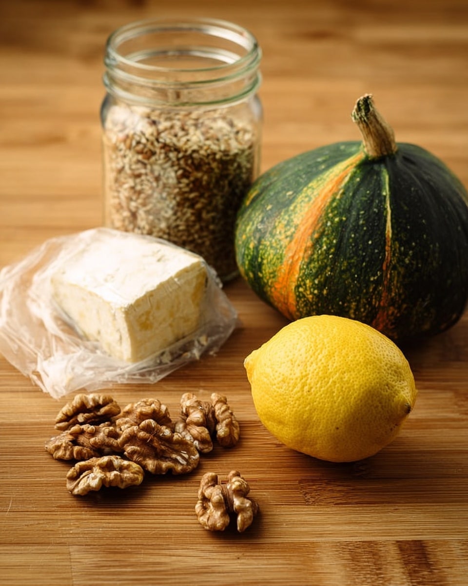 A hearty, seasonal salad featuring maple-roasted acorn squash, nutty farro, crunchy walnuts, and creamy goat cheese, tossed in a bright lemon-olive oil dressing for a perfectly balanced dish.