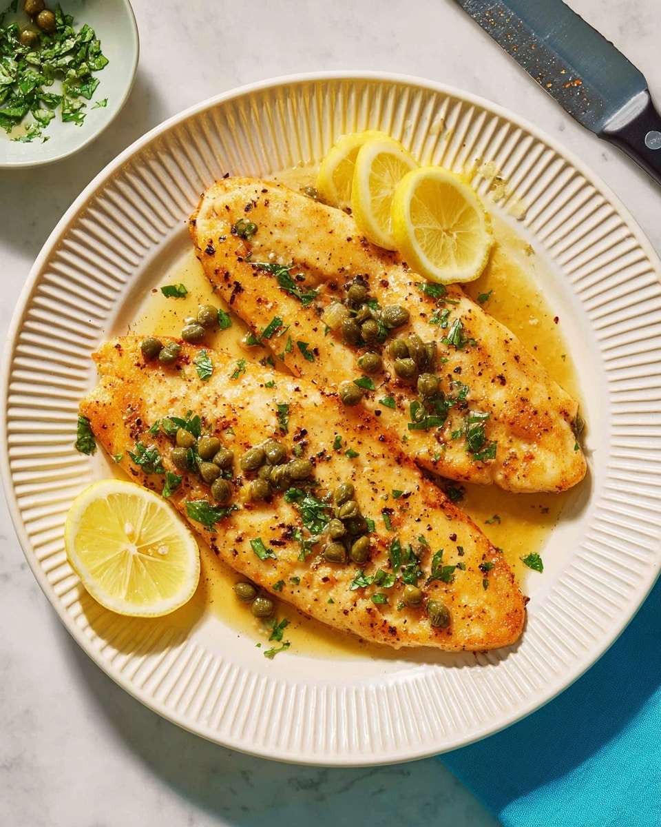 A bright, tangy chicken dish with a Mediterranean flair—featuring lemon, capers, and parsley for a light yet flavorful meal that feels both elegant and comforting.