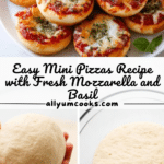 These Mini Pizzas are easy-to-make, delicious individual-sized pizzas featuring a homemade dough base topped with classic pizza sauce, fresh mozzarella, oregano, and fresh basil. Perfect for snack time, parties, or a fun family meal, these pizzas offer a perfect balance of crispy crust and melty cheese with aromatic herbs.