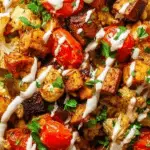 For a crowd-pleasing presentation, heap the roasted ingredients over a bed of fresh greens like arugula or baby spinach for a pop of color and freshness. Alternatively, serve the dish layered inside warm pita pockets along with the sauce for a fun, hand-held feast that’s perfect for casual lunches or picnics.