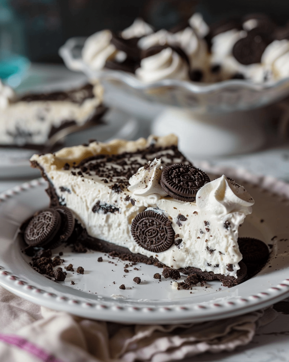 Sometimes I swap the Oreo crust for a graham cracker crust for a lighter twist. I also like adding a drizzle of chocolate ganache over the top for extra richness. If I want more crunch, I sprinkle crushed Oreos on top before chilling. For a fun twist, I sometimes use flavored Oreos like mint or peanut butter.