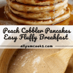 Fluffy, golden Peach Cobbler Pancakes topped with warm, caramelized peaches in a buttery cinnamon sauce. These pancakes capture all the cozy flavors of peach cobbler in a comforting breakfast stack that’s simple to make and irresistibly indulgent.