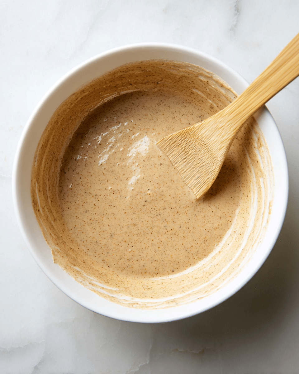 It should be pourable but not runny—like thick cake batter. If it’s too thick, I add a splash of milk.