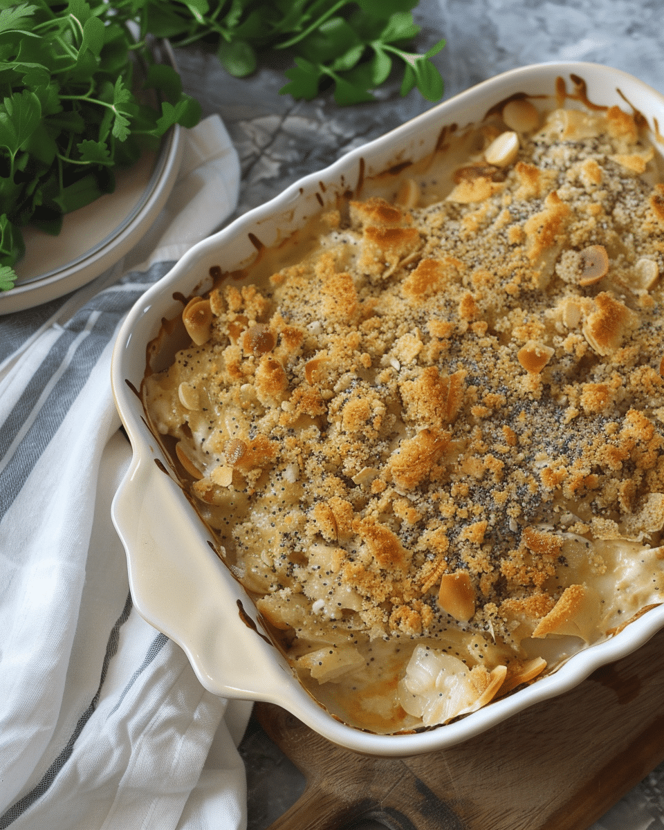 I like this casserole because it has just the right balance of creamy and crunchy textures. The poppy seeds add a subtle nutty flavor, and the buttery Ritz cracker topping makes every bite satisfying. I also love how quickly I can put it together with simple ingredients that I usually already have on hand. It’s a great recipe for weeknights, potlucks, or even family gatherings.