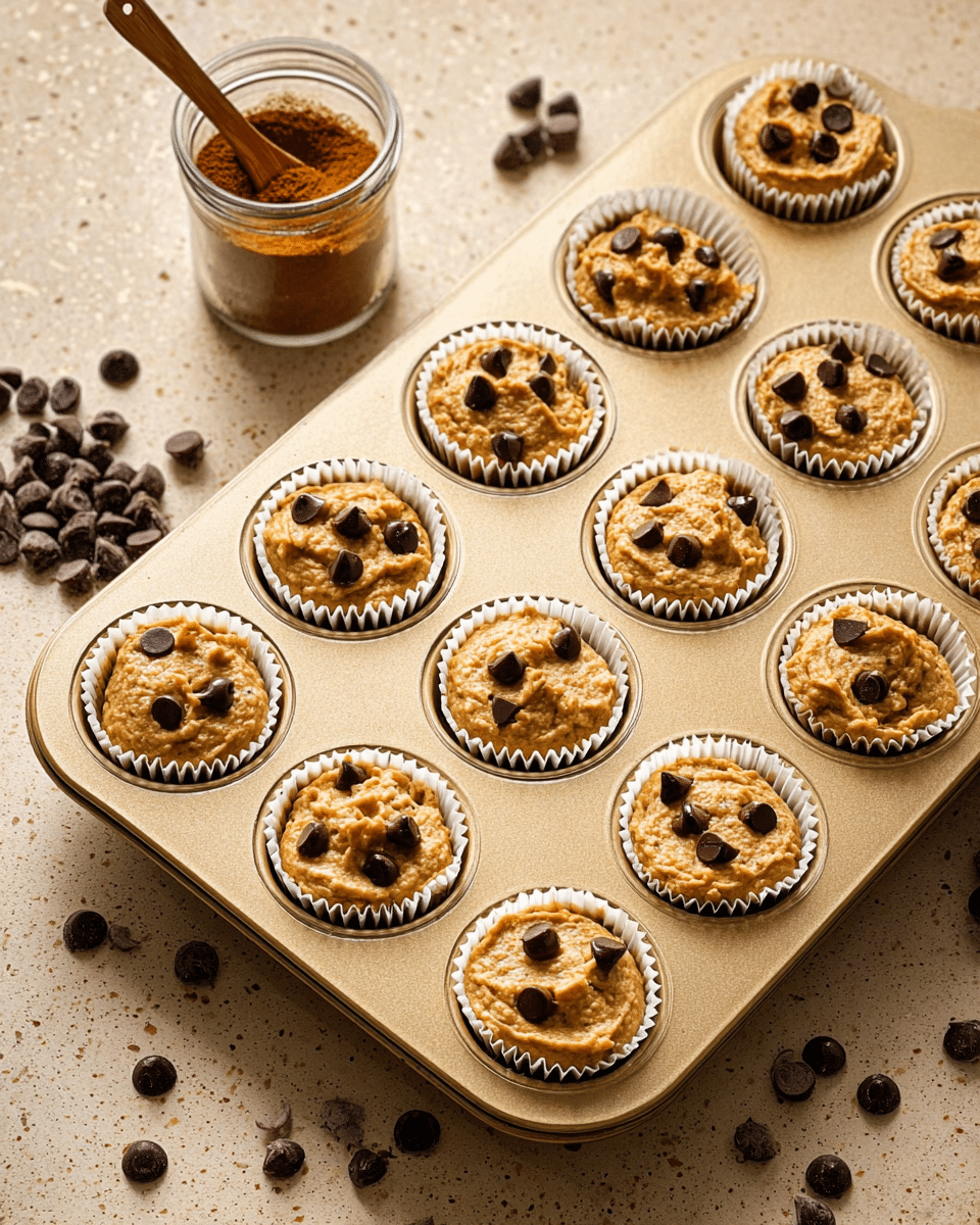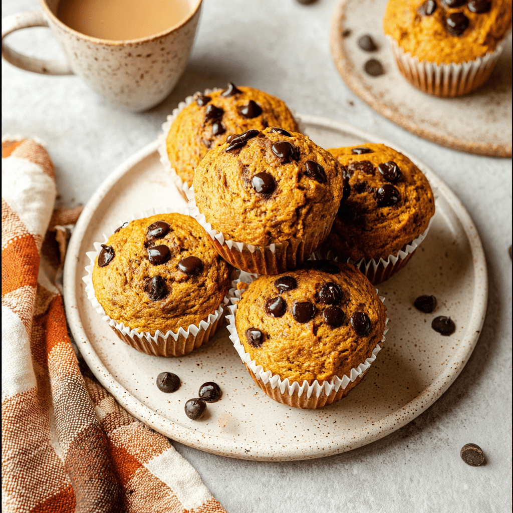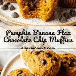 Moist, wholesome muffins made with bananas, pumpkin puree, flaxseed meal, warm spices, and chocolate chips for a nutritious yet indulgent treat perfect for breakfast, snacks, or dessert.