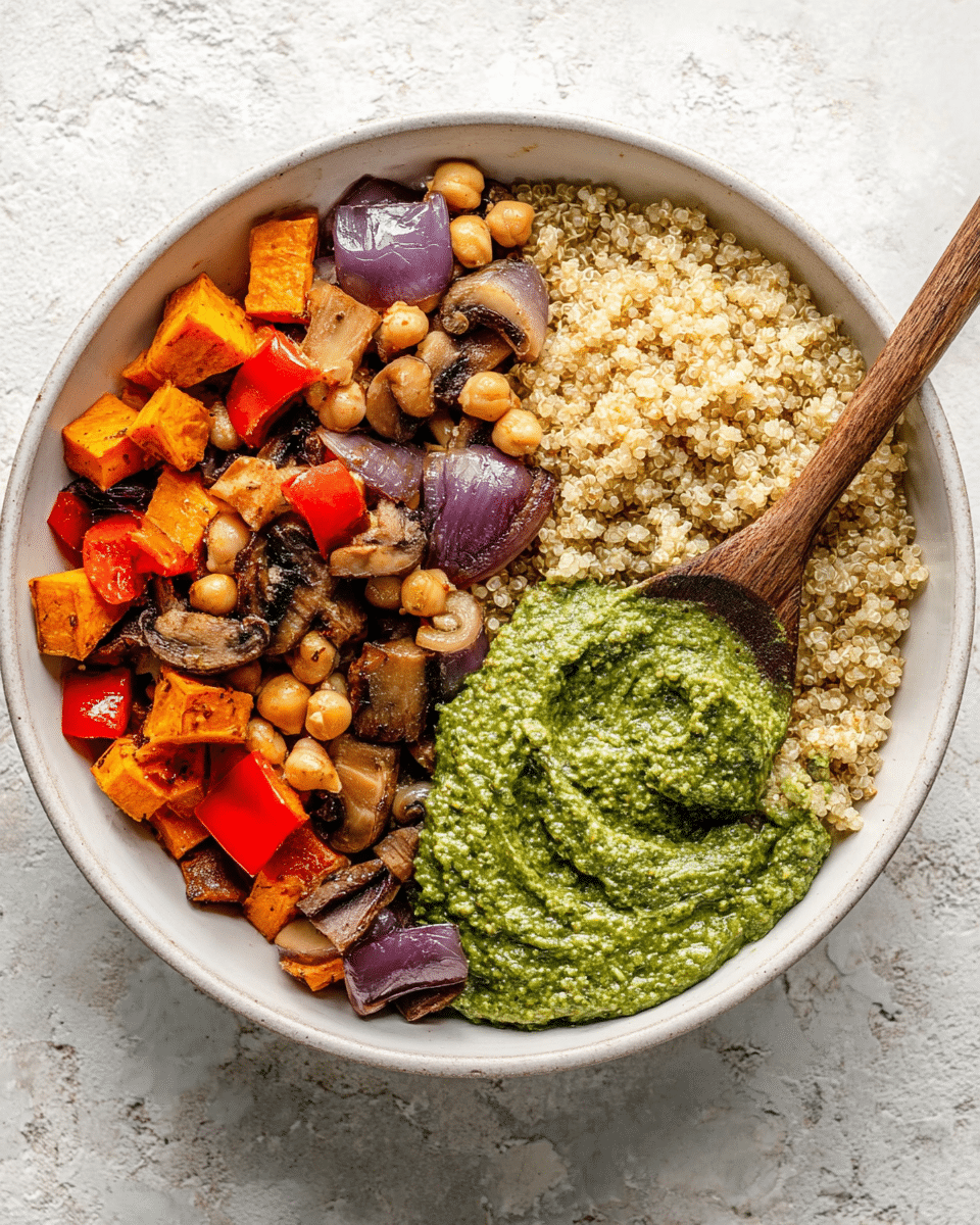 This Quick & Easy Quinoa Salad with Roasted Vegetables is a colorful, wholesome dish featuring protein-packed quinoa, tender roasted vegetables, and tangy feta cheese tossed in a bright lemon vinaigrette. It’s perfect for meal prep, light lunches, or healthy sides.