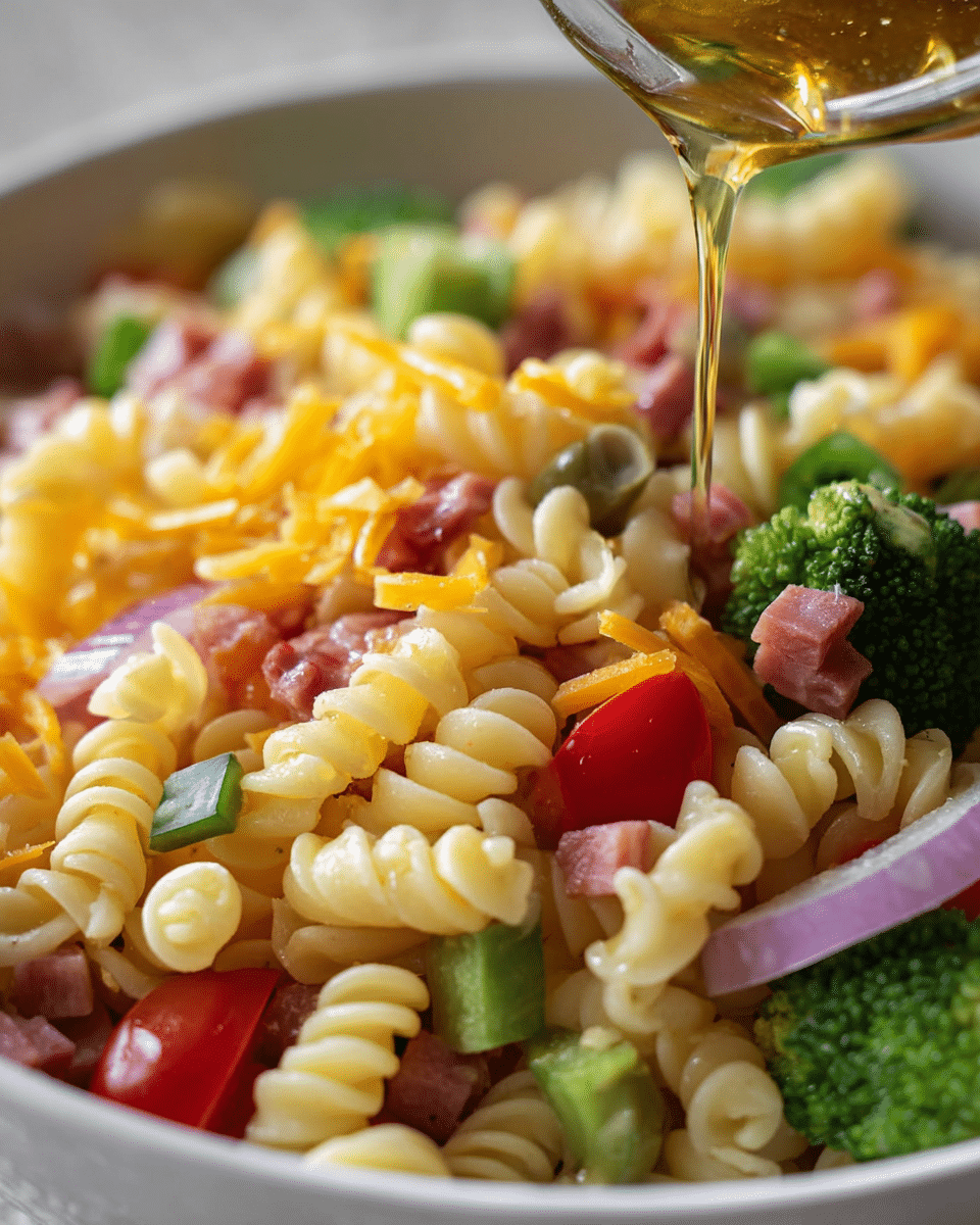 This really good pasta salad lives up to its name with a mix of fresh vegetables, savory meats, creamy cheese, and a tangy-sweet dressing. I love how easy it is to make ahead and how well it feeds a crowd. It’s a staple dish I bring to barbecues, picnics, and family dinners again and again.