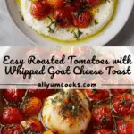 This Roasted Tomatoes with Whipped Goat Cheese recipe brings together sweet, oven-roasted cherry tomatoes infused with garlic and thyme, paired with creamy whipped goat cheese flavored with lemon and honey. Served alongside toasted sourdough, this dish is a perfect blend of savory, tangy, and sweet flavors ideal for a light appetizer or snack.