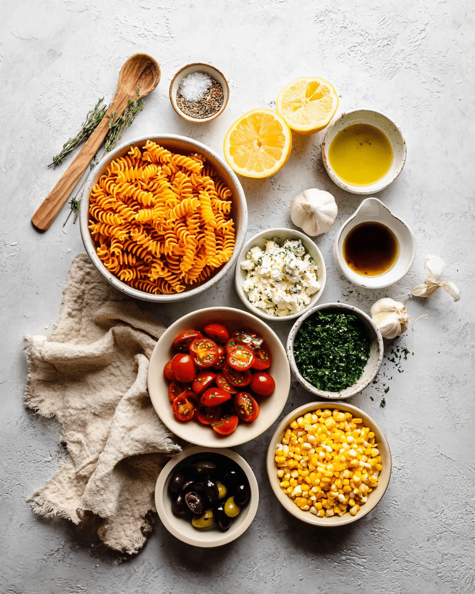 This recipe makes about 4–6 servings. It takes around 10 minutes to prepare, 15 minutes to roast the corn, and another 10 minutes to cook the pasta—ready in about 30–35 minutes total.