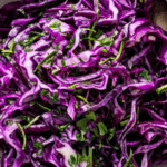 - Prepare the Cabbage Slaw: In a bowl, combine the shredded red cabbage, fresh lime juice, chopped cilantro leaves, and salt to taste. Toss well and set aside so flavors can meld.