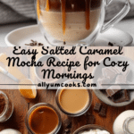 This Salted Caramel Mocha Recipe pairs beautifully with buttery pastries, such as croissants or cinnamon rolls, whose subtle sweetness complements the flavors. For a lighter option, biscotti or almond cookies work wonders, offering a satisfying crunch alongside the drink’s rich creaminess.