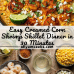 This Shrimp and Creamed Corn recipe is a quick, delicious one-pan meal perfect for busy weeknights. Juicy chili-spiced shrimp are pan-seared to perfection and served atop a rich, creamy corn sauce made with sautéed onions, garlic, smoked paprika, half-and-half, and crumbled feta cheese. The dish is brightened with fresh lime juice and cilantro, offering a harmonious balance of savory, smoky, and citrus flavors. Ready in just 30 minutes, it’s an easy yet elegant dinner option.