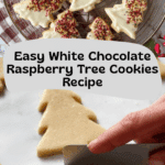 Delight in these simple yet elegant tree-shaped cookies, perfect for festive occasions or as a charming treat. Made with buttery dough enriched with white chocolate and topped with crushed freeze-dried raspberries and finely chopped pistachios, these cookies combine rich, sweet, and slightly tart flavors with a delightful crunch.