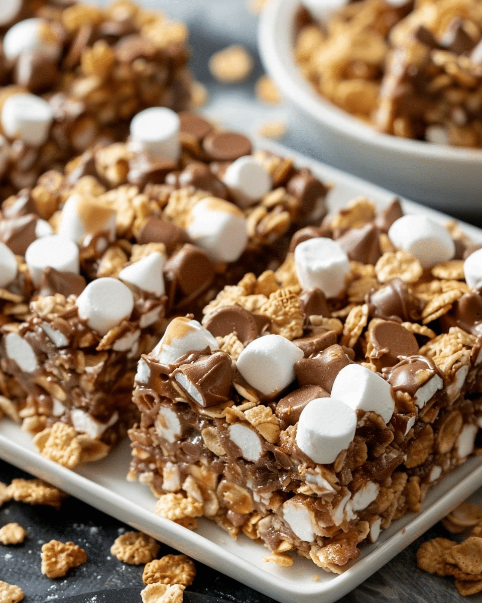 I love this recipe because it only takes a handful of ingredients and about 15 minutes to prepare. It’s a fun twist on traditional s’mores without the need for a fire, and the graham cereal gives the bars a perfectly crunchy texture. Plus, they hold up well when I want to take them to parties, picnics, or just keep them at home for a sweet snack.