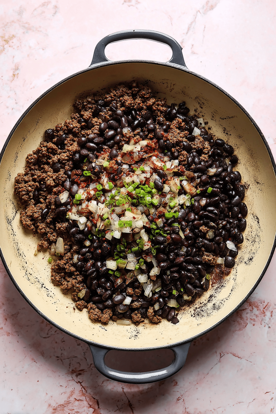 I also like swapping black beans for pinto beans to change things up. For a vegetarian version, I stick with vegetable broth, and if I want it spicier, I use jalapeños or add hot sauce directly to the bean mixture.