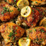 This soul-warming lemon garlic braised chicken is a comforting and flavorful dish featuring tender, golden-brown chicken pieces slow-cooked in a fragrant lemon, garlic, and herb-infused sauce. Perfect for a family meal, it’s enriched with aromatic herbs, capers, and finished with a luscious butter sauce, making it ideal to serve over rice or with toasted bread for a satisfying experience.