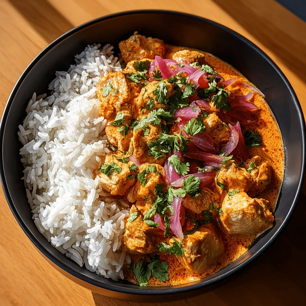 - Simmer gently for 20–25 minutes until the chicken is cooked through and the sauce thickens slightly.