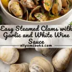 Try serving the clams in a large shallow bowl to showcase the gorgeous broth, or pile them high on a rustic platter lined with lemon wedges. You could also pour the flavorful broth over a bed of cooked pasta for a delightful twist that lets you enjoy every drop of the garlicky wine sauce.