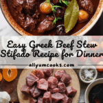 For a dinner party, try serving your Stifado in individual mini-casserole dishes or rustic earthenware bowls to retain heat and add a traditional vibe. You can also spoon the stew over creamy mashed potatoes or buttery polenta for a cozy, modern twist that’s just as satisfying.