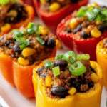 Remove the baking sheet from the oven and sprinkle each stuffed pepper with the shredded Mexican blend cheese. Return it to the oven for an additional 2 to 3 minutes, watching closely until the cheese melts into a golden, gooey topping that’s absolutely irresistible.