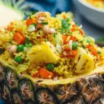 Delight in a vibrant and flavorful Vegan Thai Pineapple Fried Rice, featuring fragrant basmati rice stir-fried with fresh vegetables, sweet pineapple, crunchy cashews, and aromatic curry spices. This quick and easy dish is perfect for a wholesome, satisfying meal packed with texture and exotic taste.