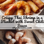 Crispy and flavorful Thai Shrimp in a Blanket features jumbo shrimp wrapped in delicate spring roll pastry, seasoned with a hint of garlic and pepper, and perfectly fried to golden perfection. Served with a sweet and spicy Thai chili sauce, this appetizer is an irresistible finger food that’s quick to prepare and sure to impress.