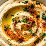 This classic hummus recipe is creamy, smooth, and packed with traditional Middle Eastern flavors. Made from blended chickpeas, tahini, garlic, lemon juice, and olive oil, it serves as a perfect dip, spread, or snack. Garnished with extra olive oil, paprika, and fresh parsley, this homemade hummus is both easy to make and deliciously satisfying.