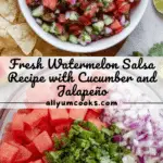 A refreshing and tangy watermelon salsa perfect for summer gatherings, combining juicy watermelon, crisp cucumber, spicy jalapeño, and zesty lime juice with a hint of Tajín seasoning for a vibrant flavor twist.