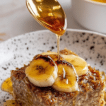Pour the oatmeal mixture into your prepared pan, spreading it out evenly. If you’re feeling fancy, you can top it with thin banana slices for a lovely decorative touch. Bake for about 35 to 40 minutes until the oatmeal is set and has a gorgeous golden-brown color on top.