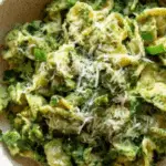 A vibrant and flavorful Vegan Pesto Pasta made with fresh basil, arugula, and a creamy cashew parmesan sauce. This gluten-free dish is packed with nutritious greens and pine nuts, offering a delicious plant-based twist on traditional pesto pasta that’s perfect for a quick and healthy meal.