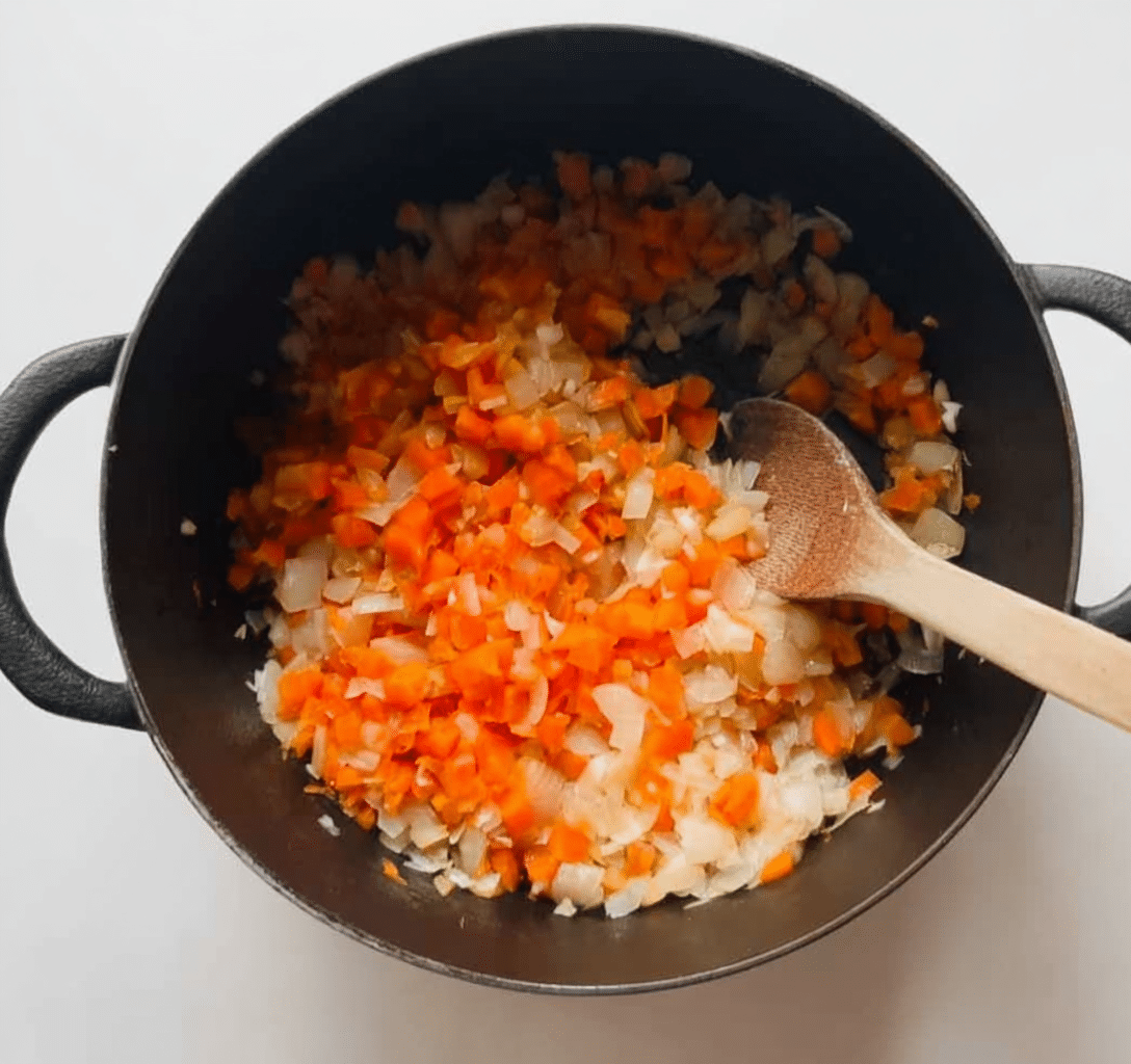 - I add the onion and poblano pepper, cooking until softened and lightly browned, about 6–7 minutes.