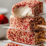Delight in these vegan Strawberry Shortcake Ice Cream Bars featuring creamy oat-based ice cream layered with vibrant freeze-dried strawberry powder and coated in a crunchy vegan shortbread crumble. Perfectly sweetened, dairy-free, and easy to prepare with no baking required.