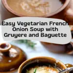 A rich and flavorful Vegetarian French Onion Soup made with spiralized onions caramelized slowly in butter and sugar, then simmered with garlic, white wine, and vegetable stock. Topped with toasted baguette slices and melted Gruyere cheese for a comforting and hearty dish perfect for a cozy meal.