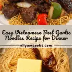 This recipe for Vietnamese Beef and Garlic Noodles features tender shaking beef marinated in a savory blend of soy, oyster, and fish sauces, paired with rich garlic noodles stir-fried with butter and vegetables. A delightful fusion of robust flavors and textures, perfect for a satisfying meal.