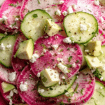 This bright and refreshing Watermelon Radish Cucumber Salad combines crisp watermelon radishes and cucumbers with creamy avocado, tangy feta, and fresh herbs. Tossed in a zesty lemon Dijon vinaigrette, it’s a vibrant and healthy salad perfect as a light lunch or a colorful side dish.