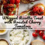 This Whipped Ricotta Toast Crostini with Roasted Tomatoes is a quick and elegant appetizer perfect for any gathering. Creamy whipped ricotta blended with Parmesan and seasoning is spread over toasted country French bread, then topped with juicy roasted cherry tomatoes and fresh thyme. The combination of smooth cheese, bursting tomatoes, and aromatic herbs creates a delightful bite that’s both simple and sophisticated.
