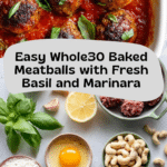 Delicious and wholesome Whole30 Baked Meatballs made with fresh basil, ground beef, and a flavorful blend of herbs and spices, baked to perfection and served with marinara sauce. This recipe offers a healthy and satisfying meal that fits perfectly into the Whole30 program.