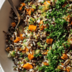 This Wild Rice Pilaf is a flavorful, hearty side dish combining nutty wild rice blend with aromatic vegetables and a blend of poultry seasoning and curry powder. Slow simmered in chicken or vegetable broth, the rice becomes tender and infused with seasoning, then combined with sautéed celery, carrots, bell pepper, scallions, and garlic, making it an excellent accompaniment to poultry, fish, or vegetarian meals. Garnished with fresh parsley, this pilaf offers both texture and vibrant color to your plate.