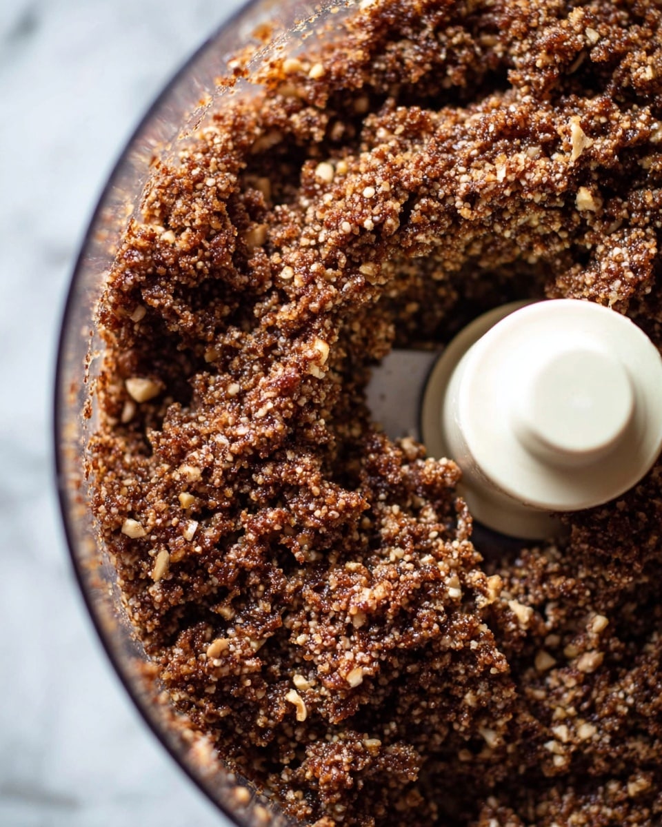 - Process until the mixture starts to clump together. If too dry, add 1–2 teaspoons warm water until it forms a dough-like consistency.