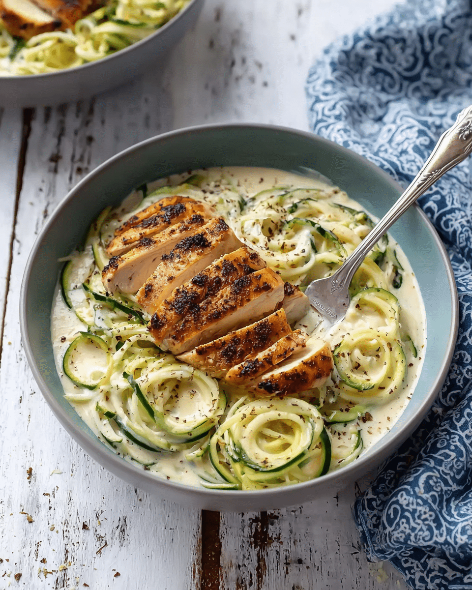 I like this recipe because it gives me all the creamy, cheesy flavor of Alfredo pasta but with a veggie-packed base. The zucchini noodles soak up the sauce beautifully, and the chicken makes it filling enough for dinner. I also enjoy how quick it is to prepare—perfect for busy nights when I still want something comforting.