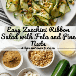 A fresh and vibrant Zucchini Ribbon Salad featuring thinly sliced zucchini tossed in a tangy white wine vinaigrette, complemented by toasted pine nuts, crumbled feta, and fragrant chives. This quick and easy salad is perfect as a light appetizer or side dish, coming together in just 10 minutes for a healthy, flavorful option.